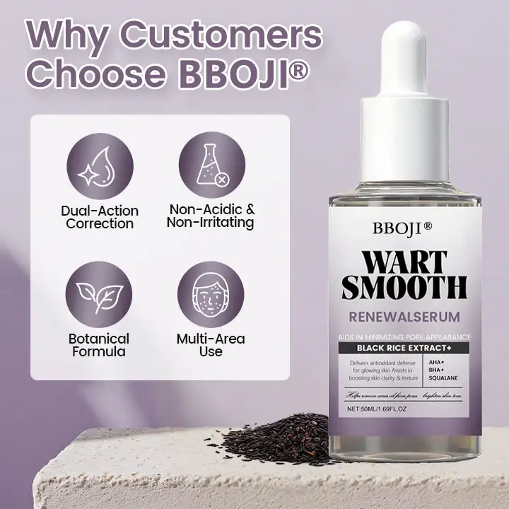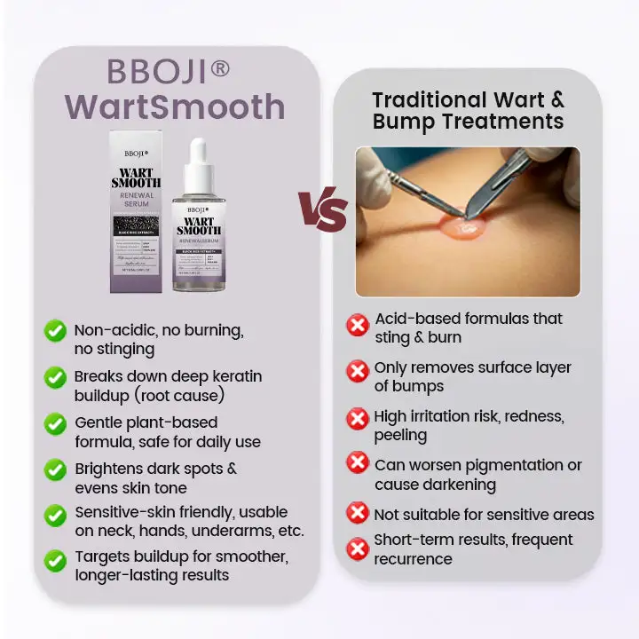 That’s why we created BBOJI® WartSmooth Renewal Serum — a lightweight, fast-absorbing botanical serum designed to gradually soften raised skin irregularities, loosen stubborn keratin buildup, and restore a smoother, clearer-looking surface — without acids, stinging, peeling, or irritation.